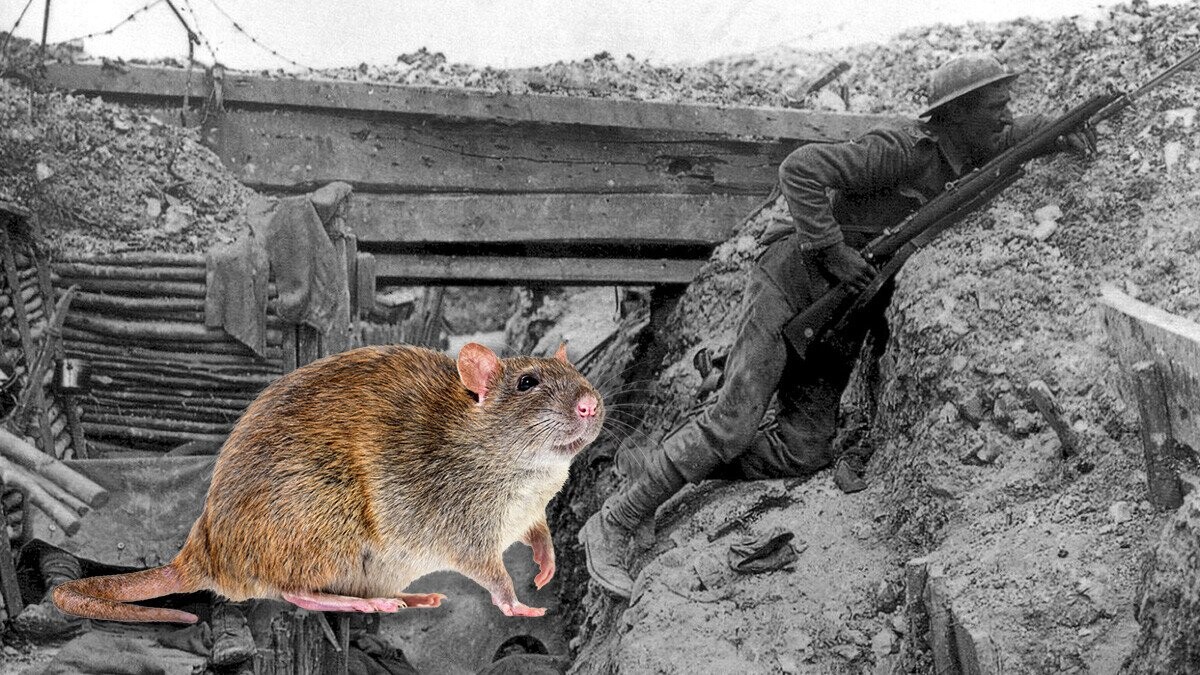 Rats swarmed the trenches in World War I, attracted by the soldiers’ waste, their food and by the dead. A soldier might wake up to a rat on his chest staring at him. Rats would pull the food right out of his hand, and the man who then gave chase could expect the rat to turn around and bite. Armies adapted by sending in dedicated dogs to catch the rats: