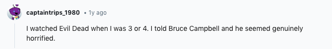 They then asked, “What is the first ‘inappropriate for your age’ movie you remember watching (not porn)?” and their fellow Redditors quickly filled the thread with their most unforgettable film-fueled childhood traumas.