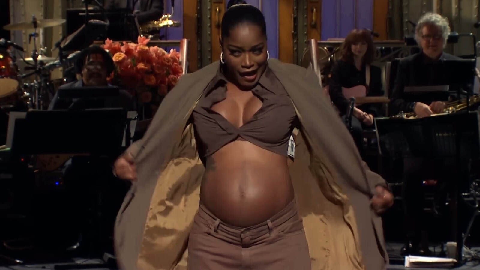 Washington pulled some old sitcom tricks the week she hosted while pregnant, such as wearing boxy outfits and hiding behind chairs while playing Michelle Obama. And Oprah Winfrey. And Beyonce. That was SNL’s awkward way of acknowledging it had no Black women in its cast, a circumstance that’s thankfully been rectified in her kid’s lifetime.
