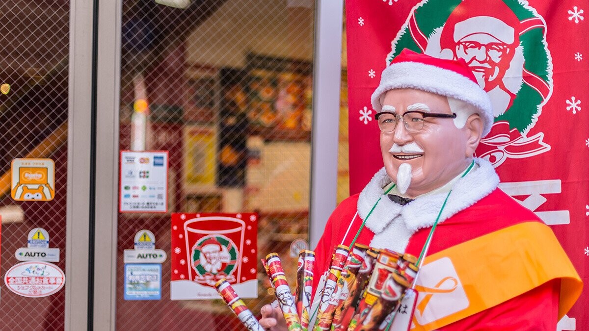Other KFC spokespersons offer variations on this origin story, but they all end with KFC assuring the public that fried chicken is a traditional Christmas food. Stores now featured Colonel Sanders dressed as Santa, ads showed families gathered at the store for Christmas, and this all might not sound like that convincing of a campaign, but it took off because Japan simply had no existing Christmas traditions.