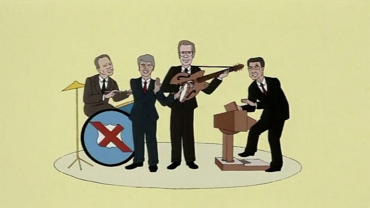 This was America’s introduction to Robert Smigel’s recurring Saturday Night Live cartoon X-Presidents, which was part of the animated TV Funhouse segments that ran on the show from 1996 until 2008. After the first Ambiguously Gay Duo cartoon and a few segments of Fun with Real Audio, TV Funhouse’s eighth cartoon was X-Presidents, a superhero parody starring America’s then roster of living ex-presidents who were imbued with non-specific superpowers.