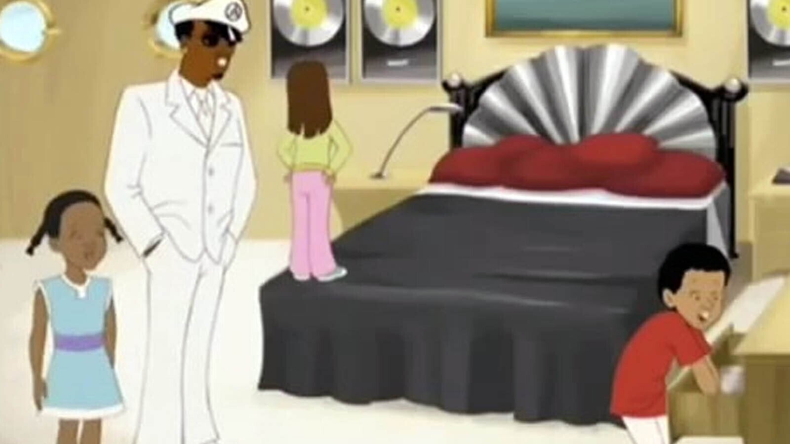 Things get creepier once Diddy and the kids find themselves on a yacht. In Diddy’s suite, one of the kid sleuths finds a bag of weed in his dresser drawer while another searches his bed. Does Diddy have glaucoma? And what’s up with all of his aliases: Sean John, Puff Daddy, Puffy, Diddy? The mystery just keeps getting murkier.