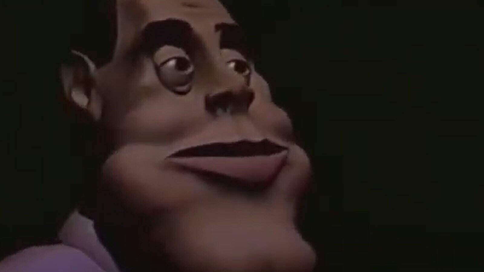 The first polygonal talking human face was like, a half step above a rage face. It looks like that opening frame in Mario 64 where you can tweak Mario’s face, except it’s your sleep paralysis demon. This dude is hard to look at, but it’s an untapped resource for reaction GIFs.