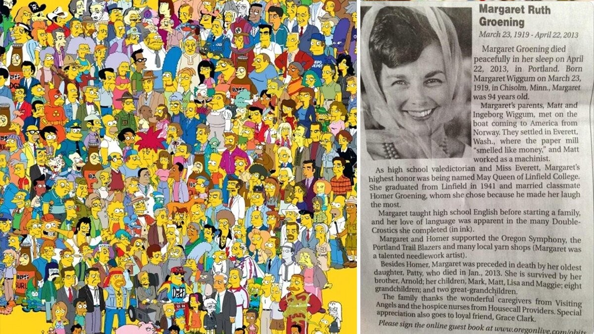 On Sunday, a copy of Margaret Groening’s 2013 obit began making the rounds on The Simpsons subreddit, where fans found themselves fascinated with not only the cartoon matriarch’s rich life, but the slew of very familiar — and familial — names filling the page.