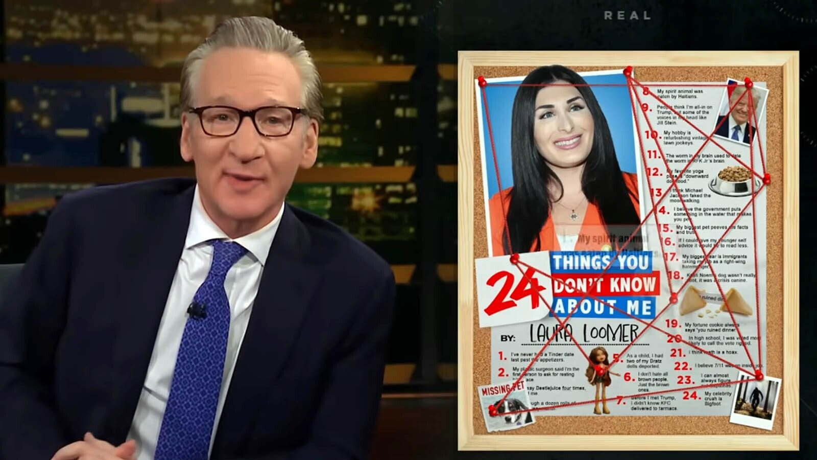 Maher’s not commenting for now, but the funny thing is, he’s delivered much meaner burns about Loomer on Real Time. On that same episode, he devoted a “24 Things You Don’t Know About” segment to “the new groupie in Trump’s circle,” including these joke-facts about his accuser: