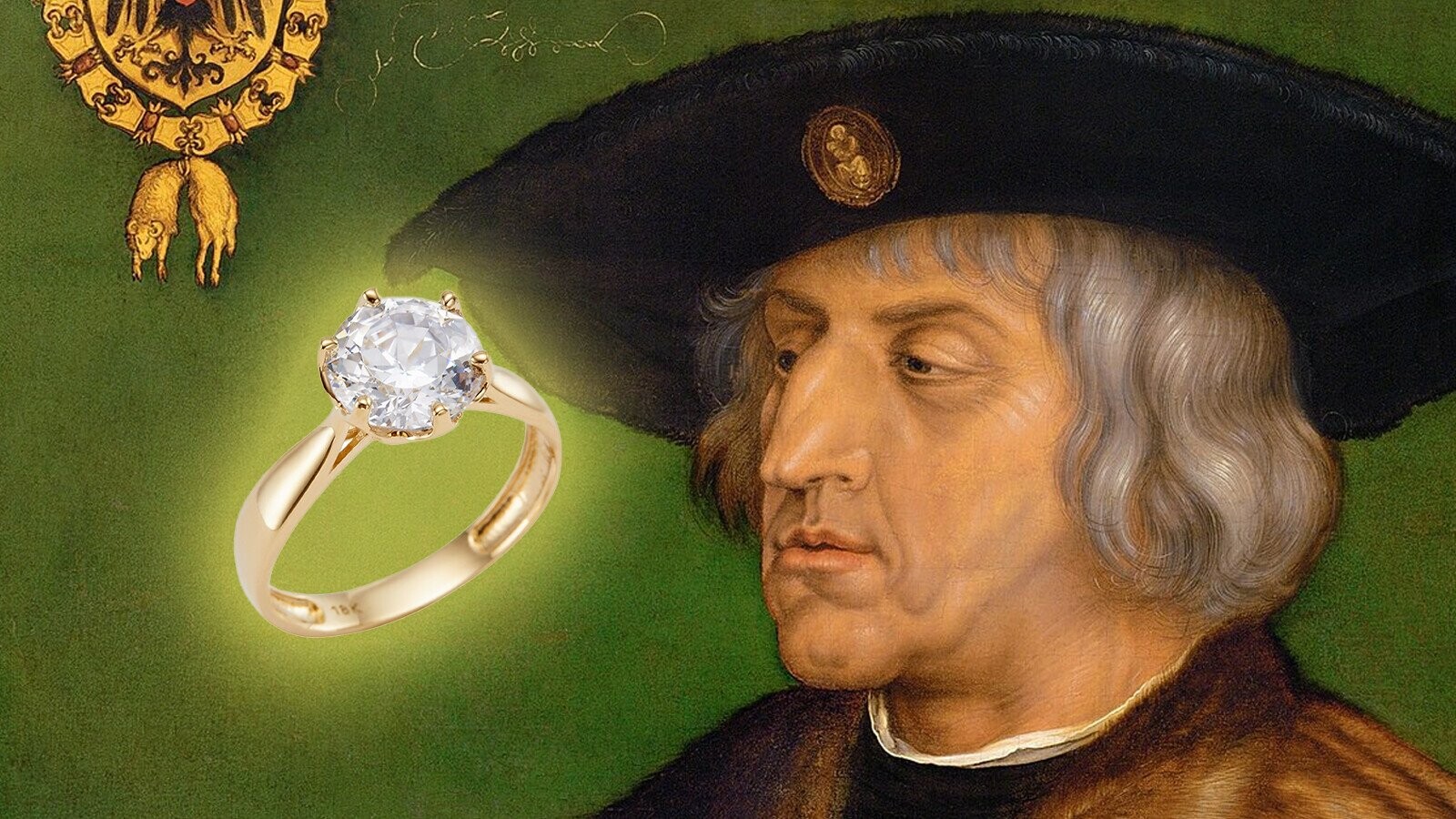 That man, the first to give a diamond engagement ring, was the Archduke Maximilian of Austria, who offered the world's first diamond engagement ring to Mary of Burgundy all the way back in 1477.