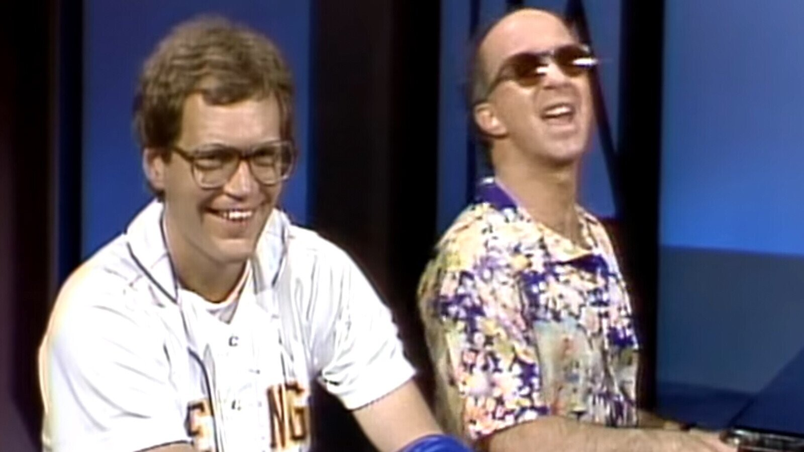 Today, Letterman’s channel opted to post a video themed around unity and optimism. Or, rather, a bitterly ironic take on unity and optimism: the 1985 Late Night “anthem.” The “We Are the World”-esque song, performed by Paul Shaffer and the “Late Night International Children’s Choir,” features cloying stock footage of American flags, soup chefs and shoe-manufacturing plants. Also, a shot of Letterman playfully peeking through a bouquet of flowers.