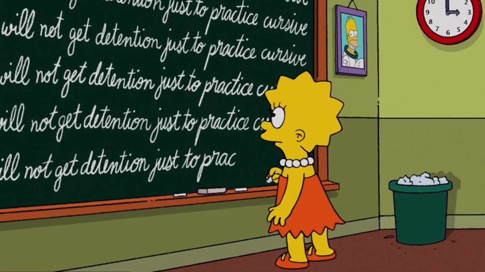 So perhaps that explains why Lisa ended up in detention, in addition to her desire to work on cursive writing?
