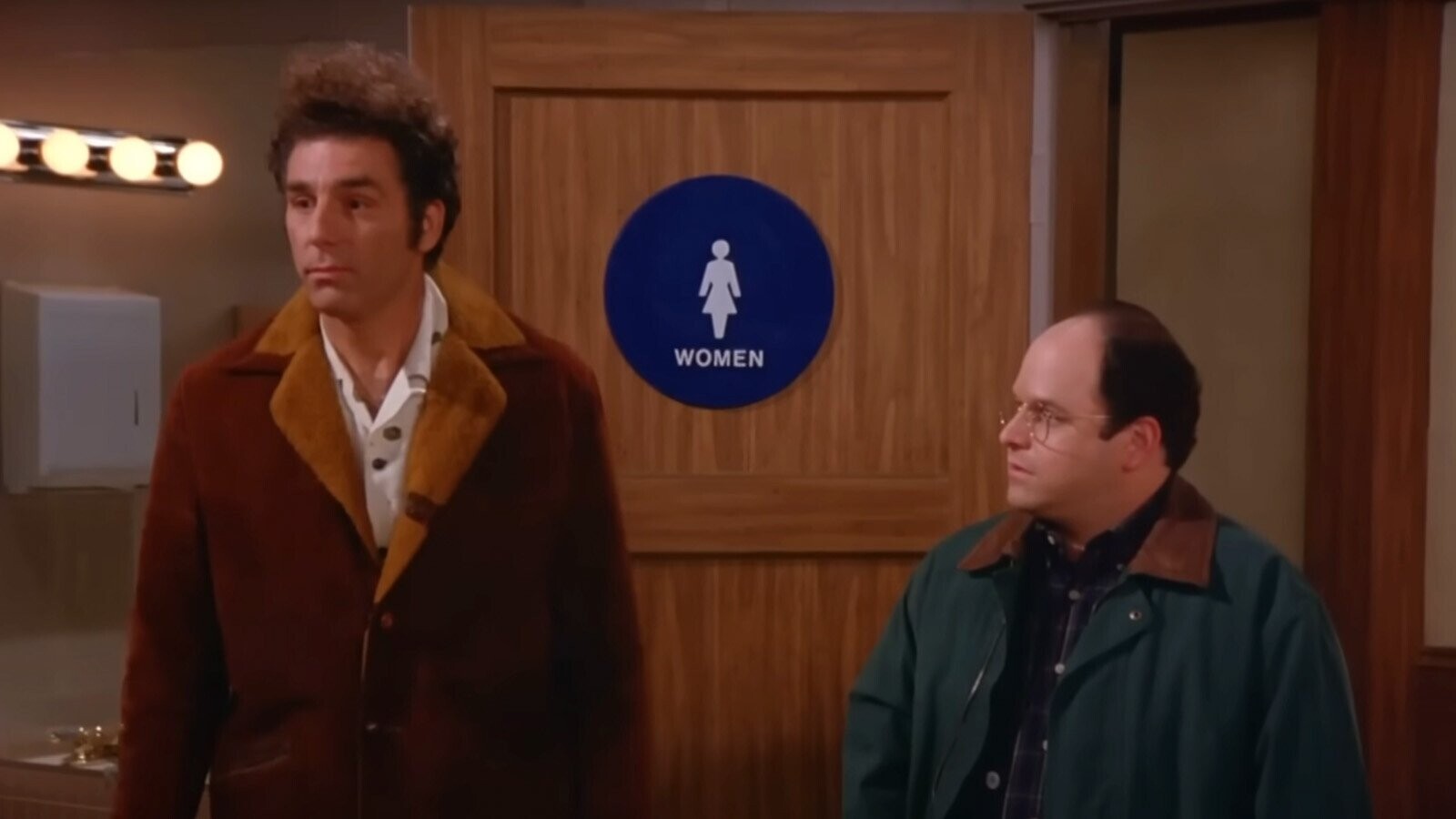 Season Six’s “The Switch” aired on January 5, 1995. In addition to Elaine’s quest to reclaim Mr. Pitt’s tennis racket, and Jerry’s attempt to hook up with his girlfriend’s roommate, the episode featured one of George’s most repugnant storylines. In an effort to discover whether or not his model girlfriend is bulimic (out of “concern” that he’s wasting money on expensive meals), George enlists the help of Kramer’s estranged mother, who happens to be a restroom attendant. But when she sees her son for the first time in years, Babs can’t help but exclaim, “Cosmo!”