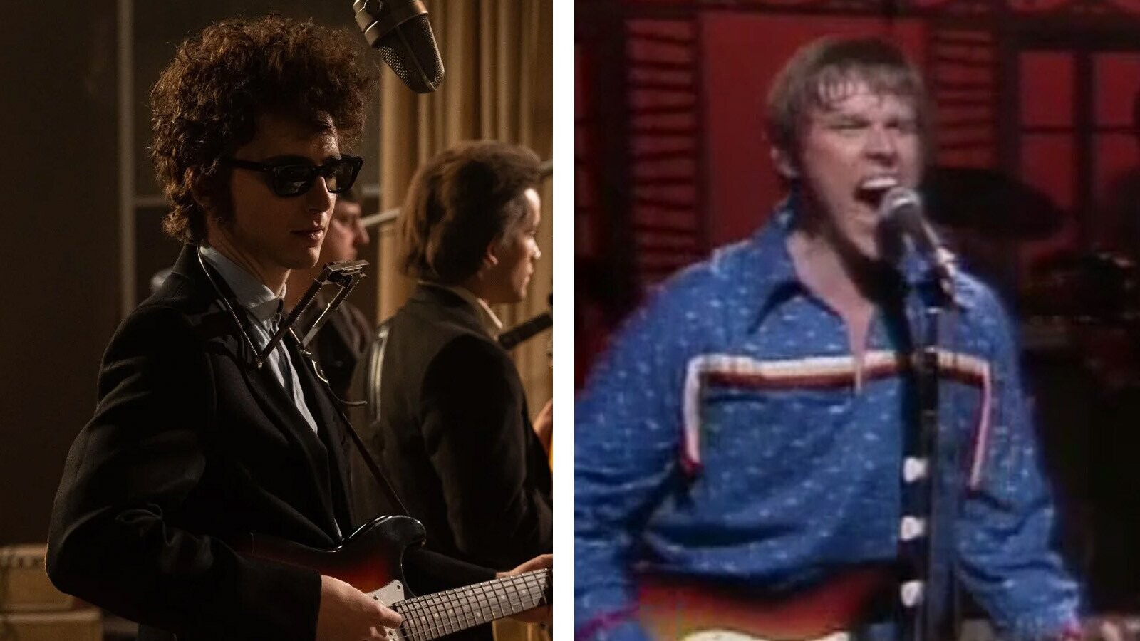 Like Chalamet, Busey had just received a lot of critical acclaim for his work in a high-profile rock star biopic: Busey played Buddy Holly in the aptly-named The Buddy Holly Story. When Chalamet hosts in a few weeks, he will, in all likelihood, have been nominated for an Oscar in the Best Actor category. Similarly, Busey was nominated for playing Holly (he ultimately lost to Jon Voight for the Vietnam War drama Coming Home).