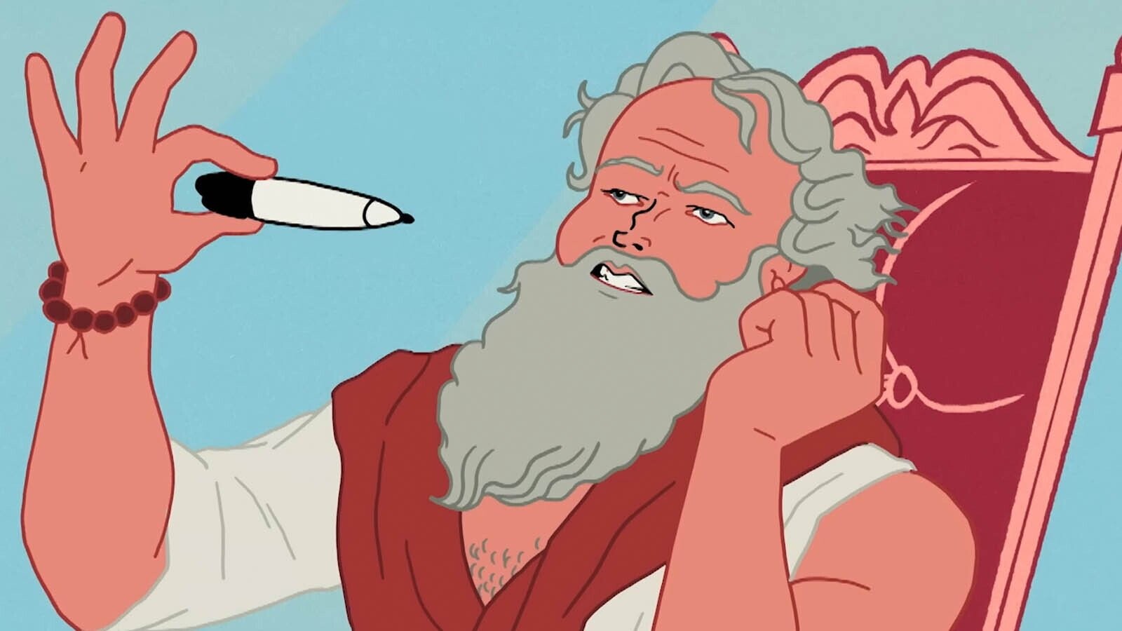 But God’s helpers did a great job designing the universe. “The whole solar system honestly slaps, like the planets,” proclaims the Almighty. “And then my idea for Gooby, the giant creature with the sun in its mouth, it’s, like, brilliant.”