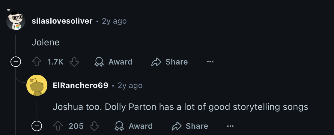 Redditors have discussed their favorite songs that bring vivid characters, passionate lyrics and elaborate sagas to life within the confines of a few well-versed bars. Whether it’s a tearjerker from Billy Joel or a gripping tale from Kendrick Lamar, these songs tell one hell of a story.