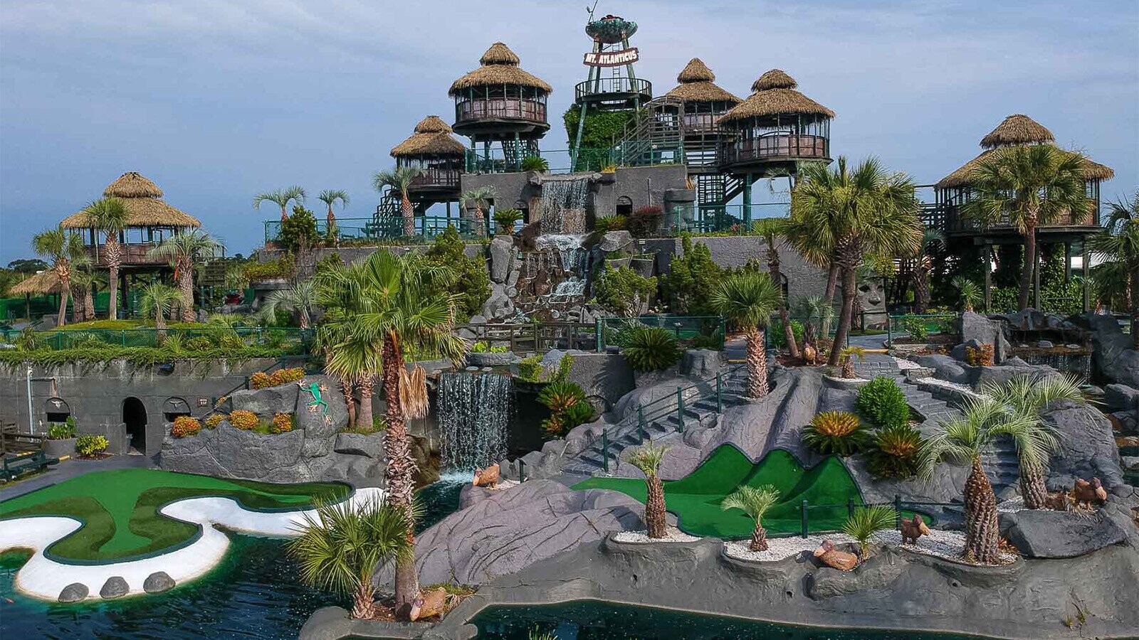The intentionally misspelled “Goff” available at Mt. Atlanticus in Myrtle Beach, Florida spans a shocking amount of not only horizontal, but vertical space. Like a strange form of parasitic astroturf, it climbs through multiple stories of an abandoned department store in the name of leisure. Elevated, thatched huts make it seem like a mini-golf course that could realistically provide shelter for a night without cramming yourself into a tiny windmill. It even has large lore to match: Its fictional history says it’s been around for a full 50 millennia, and floated to Florida after breaking off Atlantis itself.
