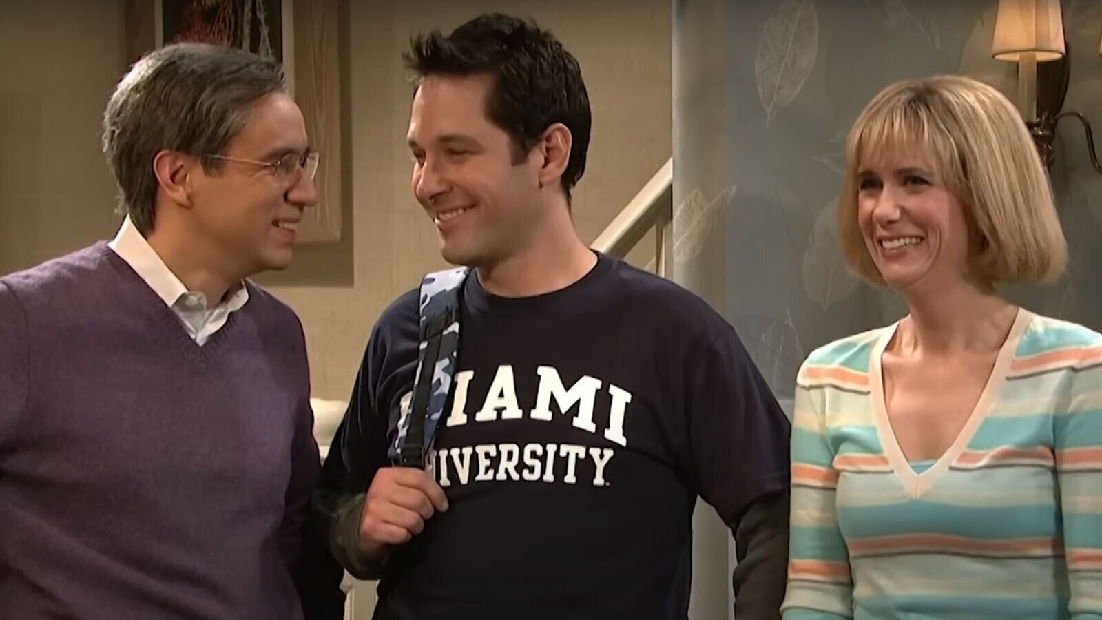 In the newest episode of The Lonely Island and Seth Meyers Podcast, the hosts discussed working with future Five-Timers Club inductee Paul Rudd when he hosted the show for the very first time back in 2008. In addition to starring in a Digital Short involving nude paintings and horrific violence, Rudd also starred in the first of many “Kissing Family” sketches.