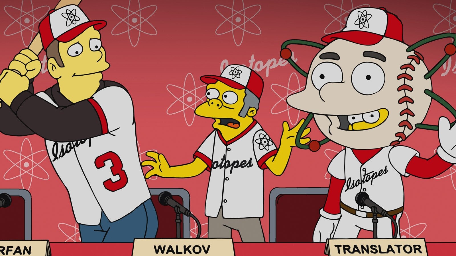 This Sunday, The Simpsons will once again explore America’s pastime with “Abe League of Their Moe.” The episode finds Moe luring a Macedonian baseball megastar to the Springfield Isotopes with a “hype video.” Surprisingly, the Isotopes win out, all thanks to Moe who, apparently, is Macedonian now? Unfortunately for the ‘Topes, the player becomes embroiled in a sports betting scandal, and Moe ends up having to take the fall for him.