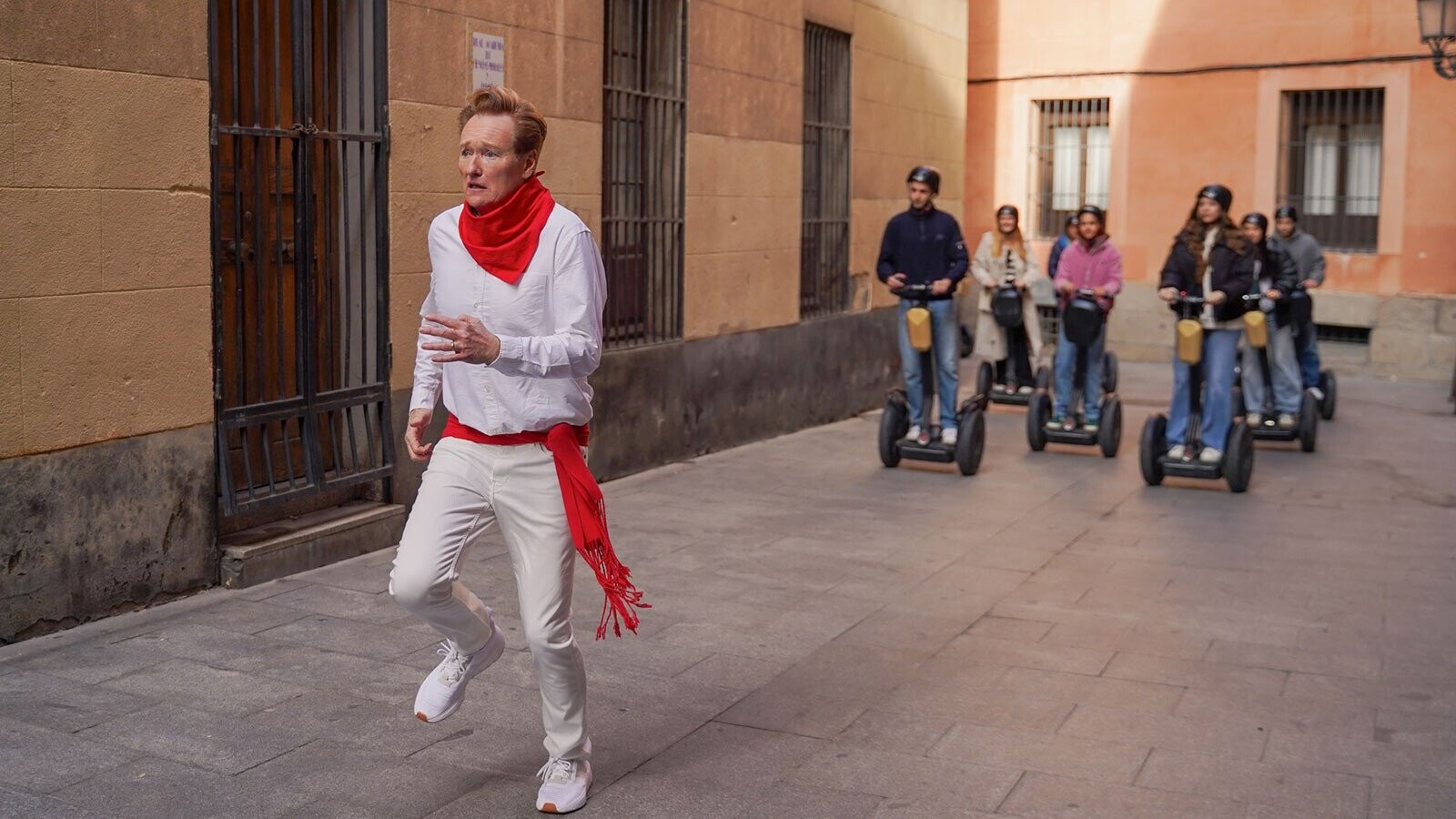 But O’Brien is just as fun with Javier, the tourist info booth staffer and podcast listener we are given to understand is the reason O’Brien has chosen to visit Spain. Arriving in Madrid, O’Brien learns that Javier’s employers haven’t granted the show permission to film in the booth, so O’Brien sets up a rival information desk across the street. The flimsy table and O’Brien’s loose grasp of Spanish generate several minutes’ worth of comic fodder; though it’s unclear whether O’Brien actually convinces anyone to, for instance, check out El Rey De Burger, offering dubious travel tips to passersby is exactly the kind of thing I want to watch O’Brien do.