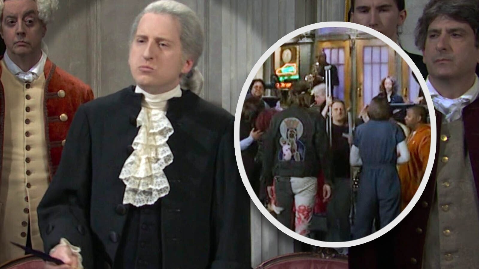 The injury occurred during a sketch called The Second Amendment — ironically, a scene that made no physical demands on Johnson whatsoever. JAJ played a Founding Father who spent the bit pontificating about proposed Constitutional amendments. He’s standing behind a table and doesn’t move off that spot for the entire sketch.