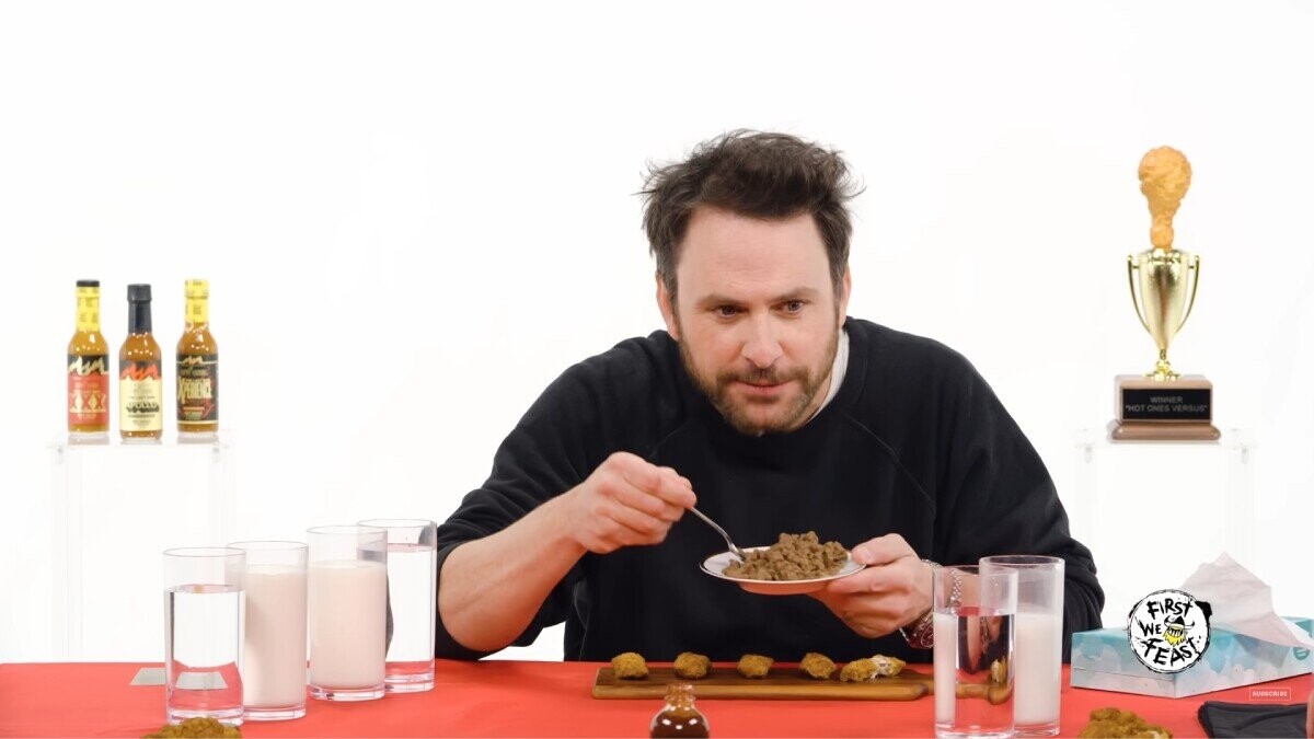 Charlie Day Actually, Really, Truly Eats Cat Food on ‘Hot Ones Versus’