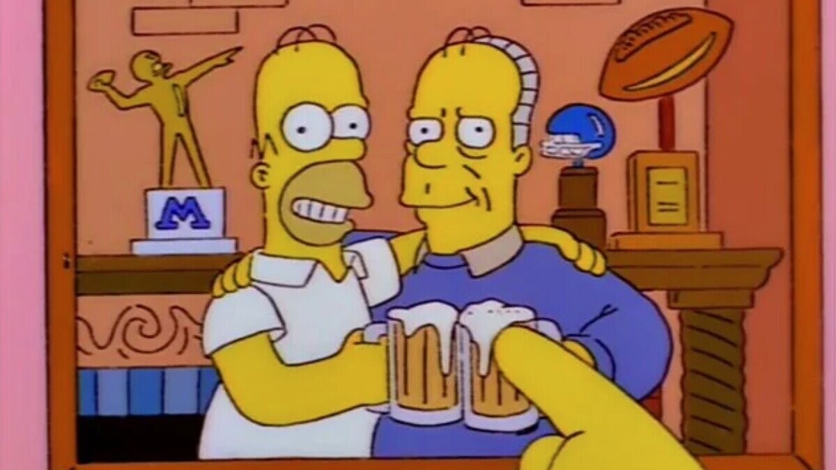 But Ford, on the other hand, had never publicly attacked The Simpsons, and as such, deserved no undignified treatment in any of Springfield’s underground infrastructure. Instead, his inoffensively masculine demeanor made him the perfect drinking and eating buddy for America’s favorite animated patriarch.