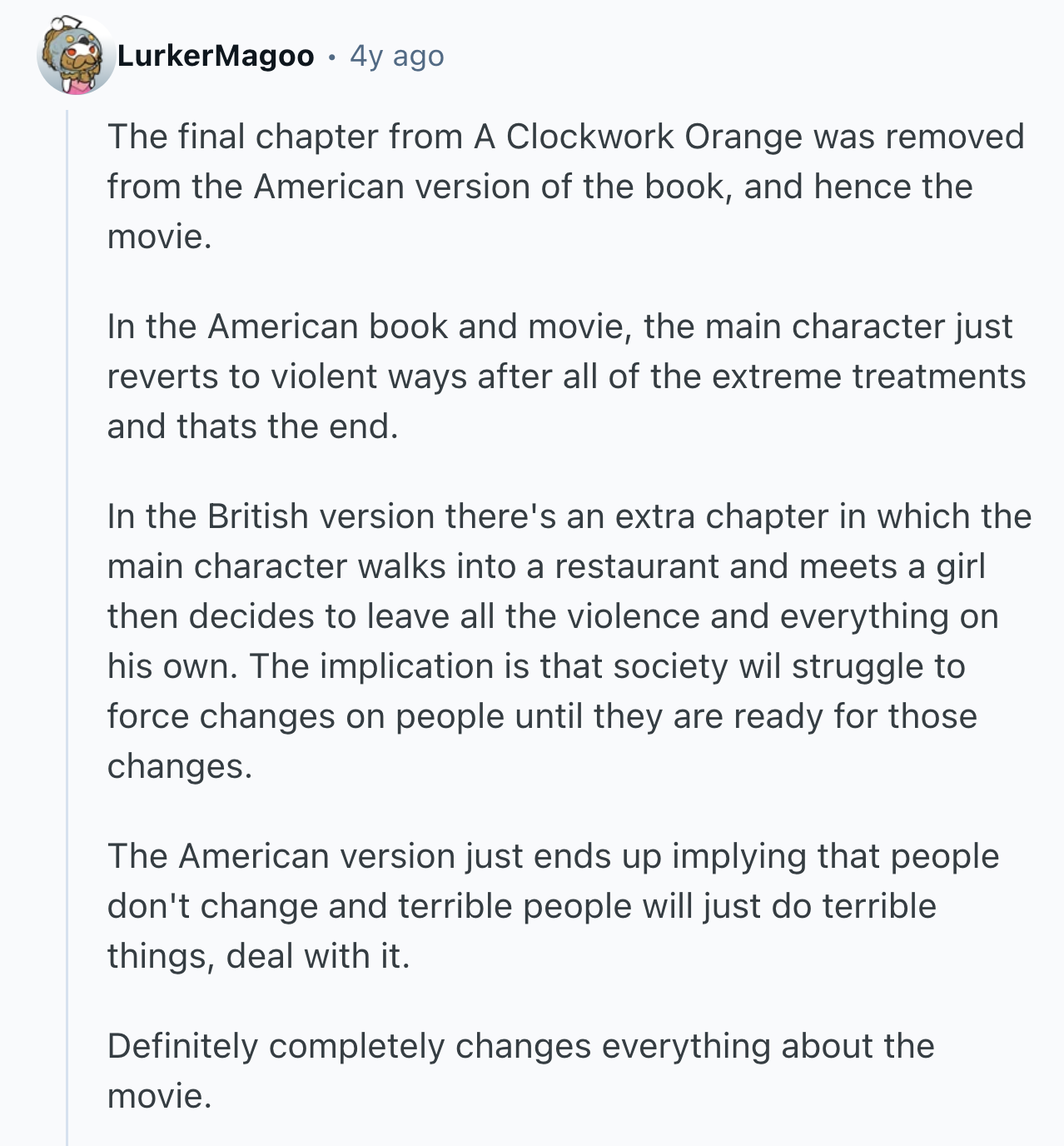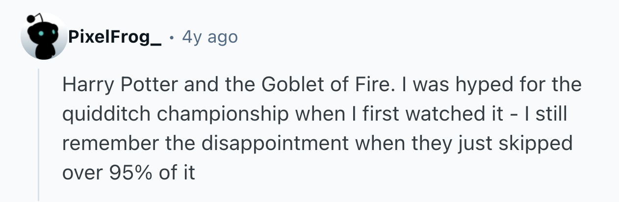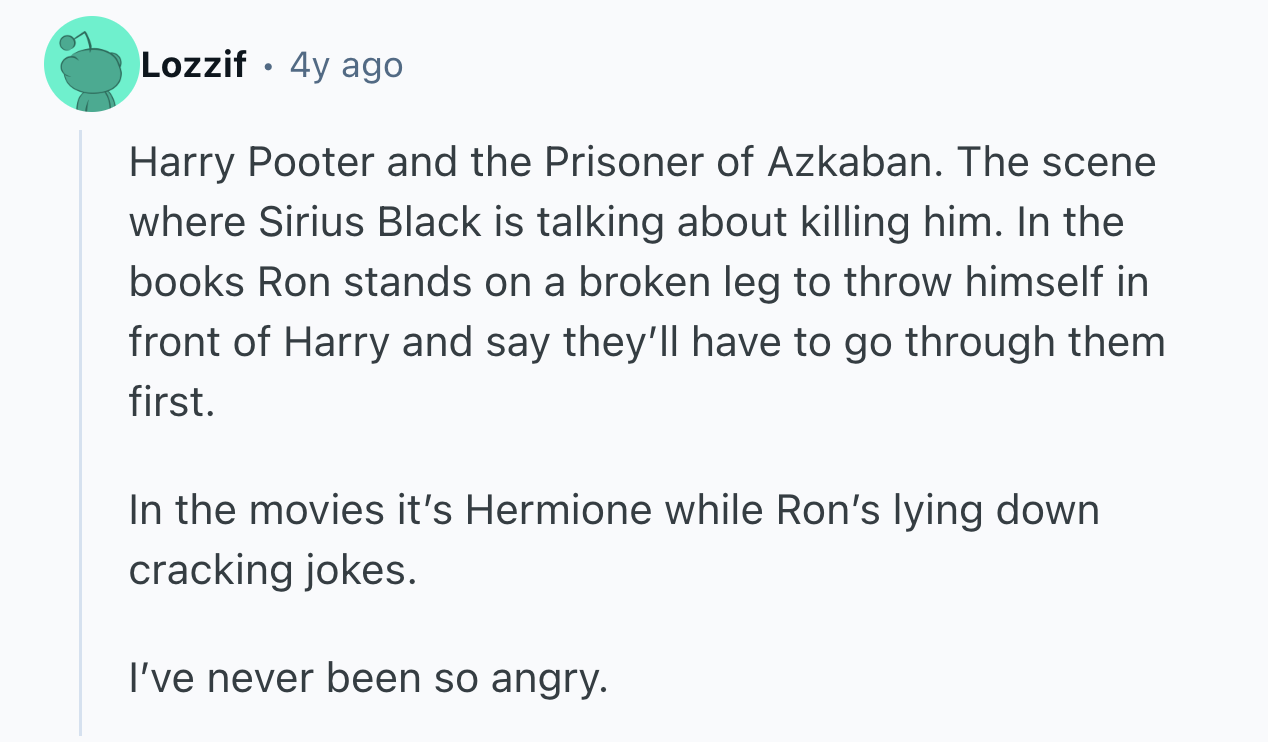 They then asked, “What scene was left out of a movie adaptation of a book that made you say ‘WTF, why?!’” This is how their fellow Redditors responded…