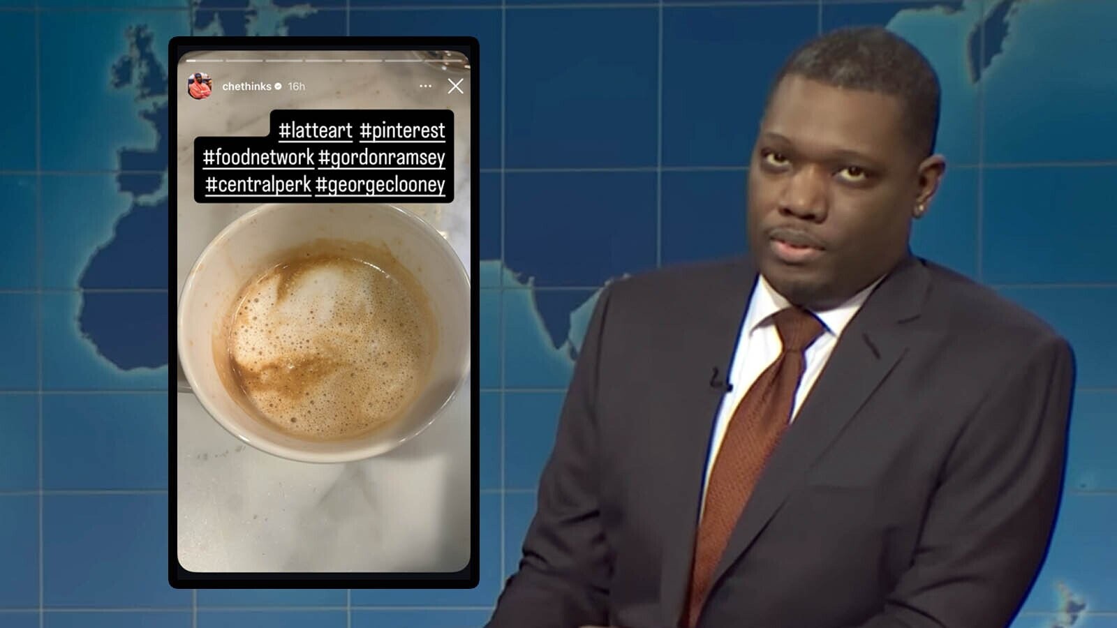 Is Michael Che secretly mocking his Instagram fans or sincerely showing off his new skills as a barista?