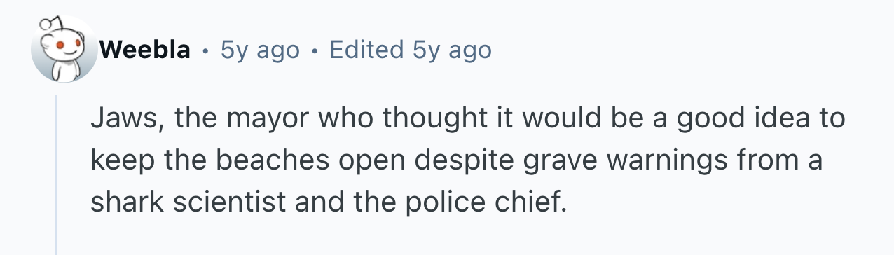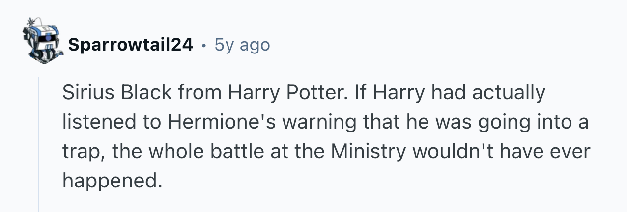 Sometimes, though, it’s not necessary at all. In fact, if anyone in the vicinity had displayed even an ounce of good judgment, so many fan favorites could have escaped with their lives. That’s why user sugar-soad asked r/AskReddit, “Which fictional character would still be alive if other characters had used a bit of common sense?”