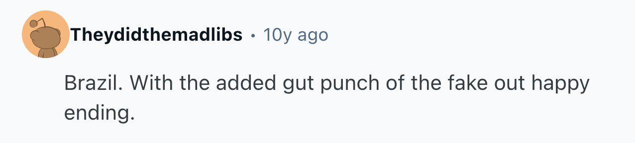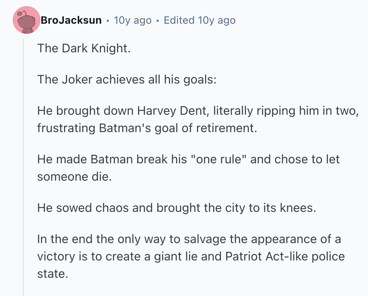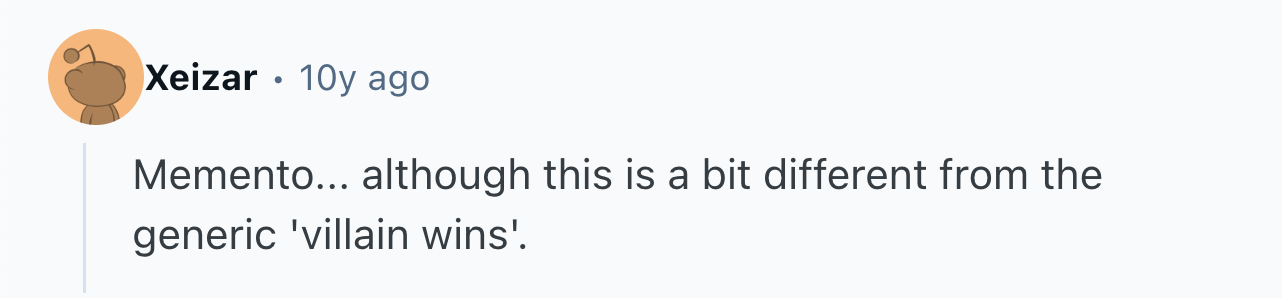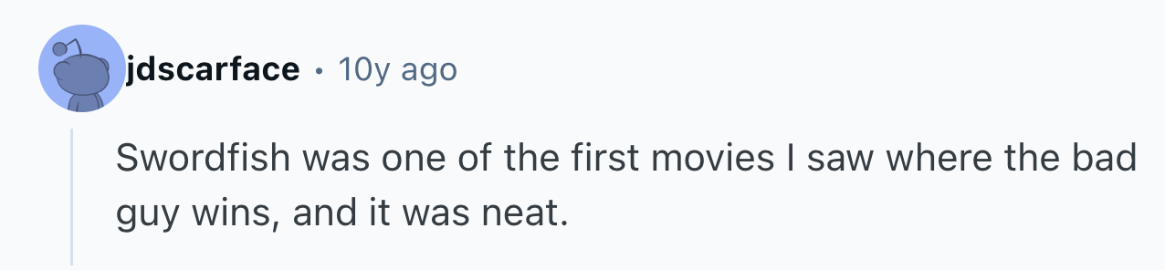 They then asked r/AskReddit, “What is the best ‘the bad guy won’ ending?” and all kinds of winning evil followed.