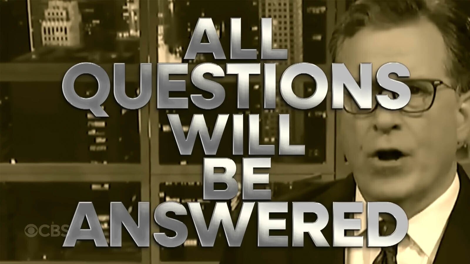 “This fall on CBS, it’s the final season of The Late Show with Stephen Colbert, and all questions will be answered. What's in Stephen’s mug? Who is he pointing at? And who shot Louis Cato?”
