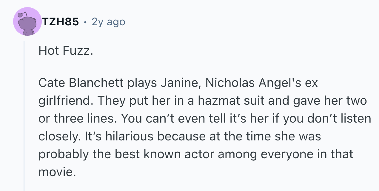 They then asked, “What’s the shortest speaking cameo you've seen in film/TV?” Here’s how their fellow Redditors answered…
