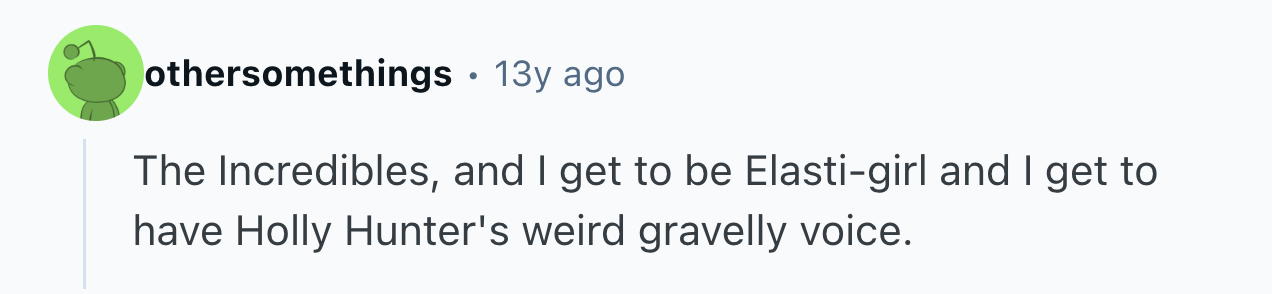 But other movies would be rad as hell to live out. For one Redditor, it would be Stuart Little, “because cheese,” as user Melonias points out but “also, sleeping in a bed that is a thousand times your size” would be neat, according to the user.