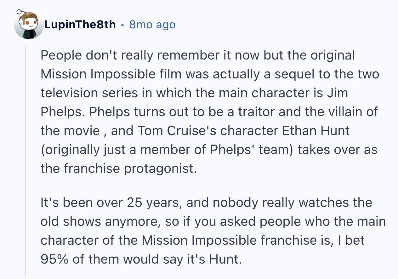 “I am aware the new Avengers set-up didn’t track so well with moviegoers and reportedly has been cancelled,” Redditor Liquidmurr told r/Movies, referring to Falcon being “tasked with carrying” the Captain America franchise, “and I can’t really think of a strong, even loved, sidekick that has led a franchise forward.”