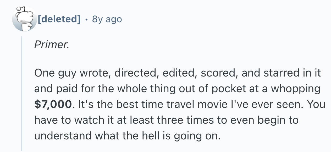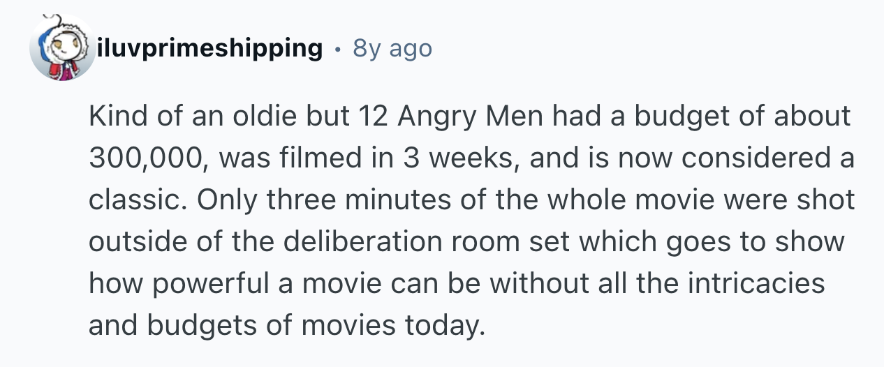 They then asked, “What movie turned out fantastic despite a small budget?” Here’s how their fellow Redditors answered…