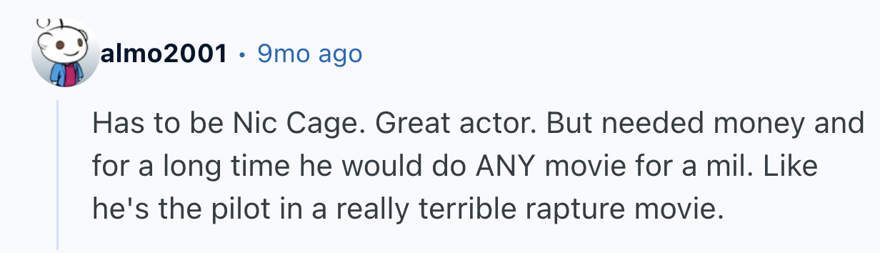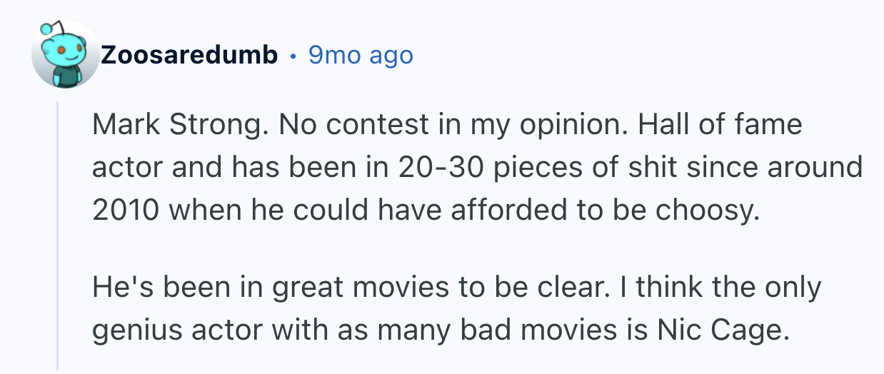 They asked, “Who is the best actor with the worst filmography?” This is the kind of awfulness that followed…