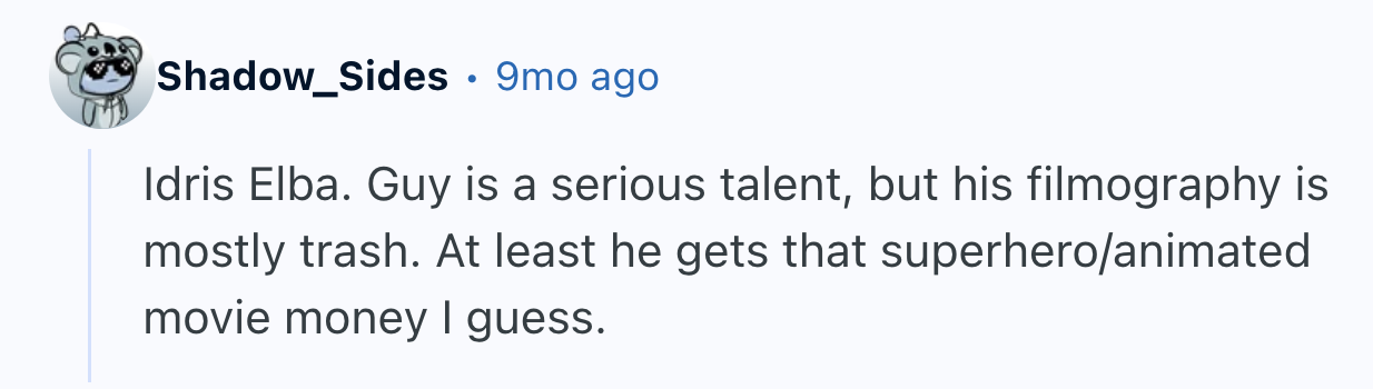 According to Redditor JokerDeSilva10, this has been a major topic of TikTok conversation. “Interestingly, the main one in the TikTok was Chris Hemsworth, which I don’t particularly agree with, though I don’t think he’s a bad actor,” they told r/Movies. “I guess outside of his Marvel projects, he has been in largely pretty mediocre movies, with the exception of Bad Times at the El Royale, Star Trek (which he was barely in) and Furiosa, which I still haven’t seen but heard was good.”