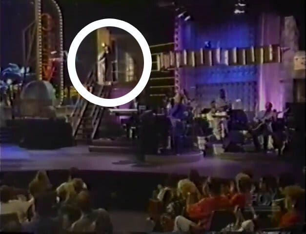 An exaggeration? Sure, but not by much. Check out this episode when Chase introduces comic Rita Rudner at the 9:05 mark. She opens the Door in the Sky, a full story above Chase, and waves to the crowd.