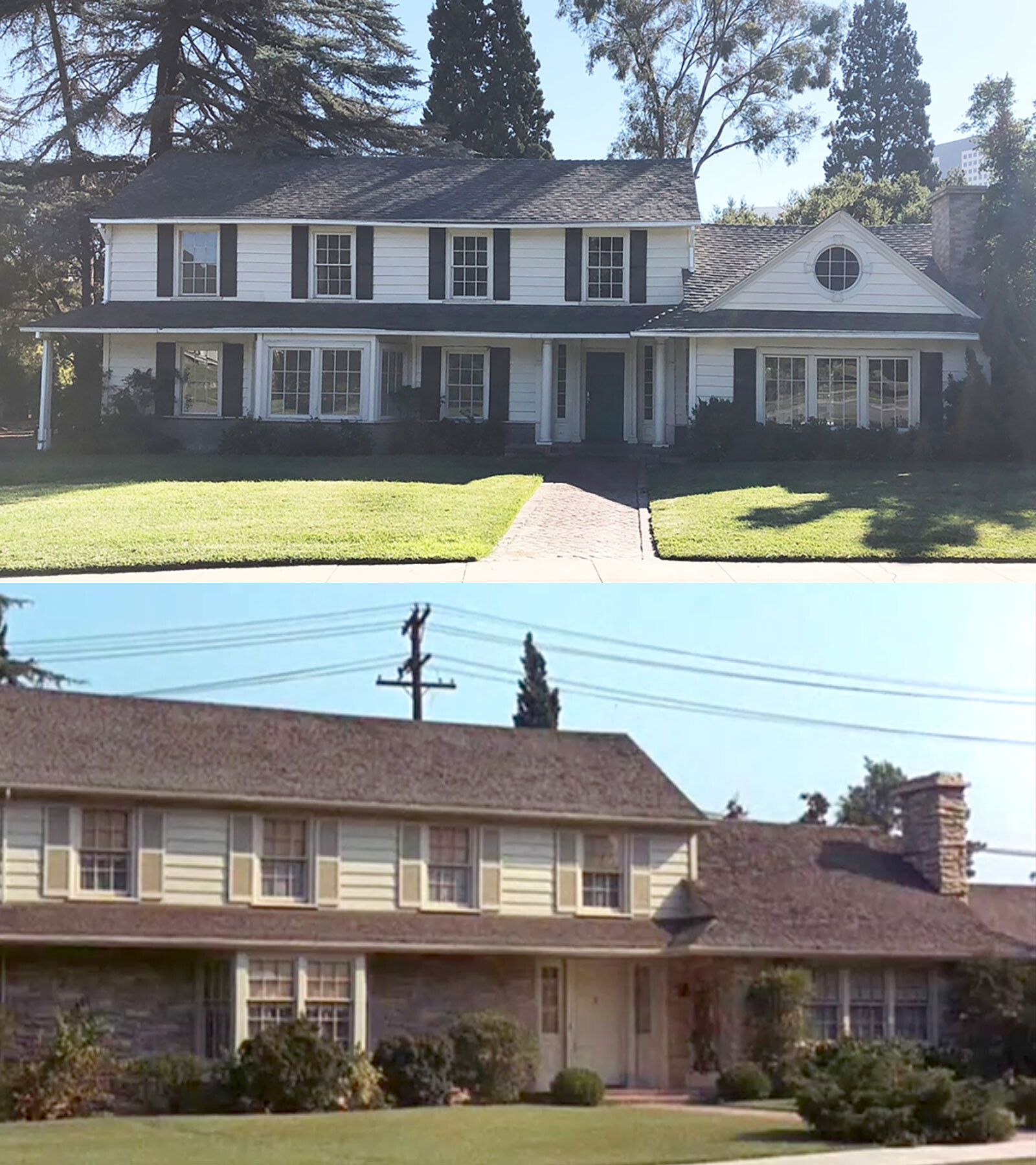 Don’t say “they’re not the same, the roof on the garage side is different” because they can change those for productions. This was also the house in The Middle minus a whole story.