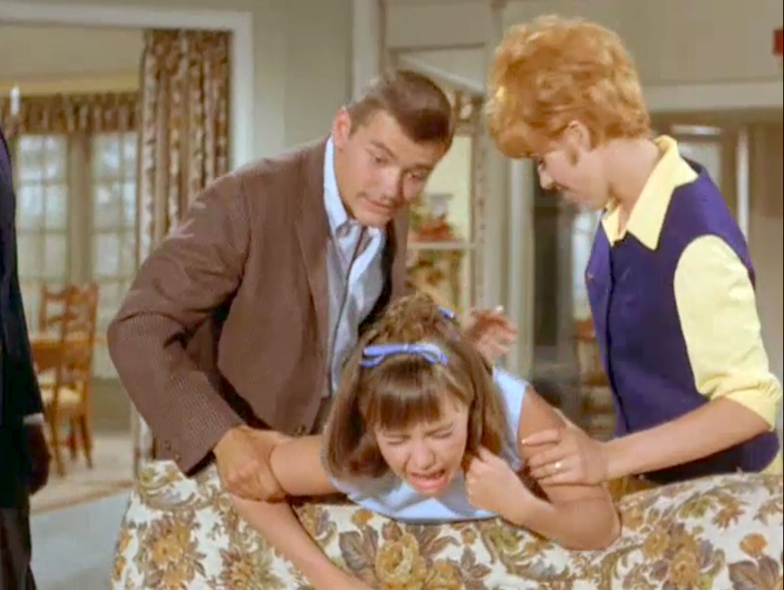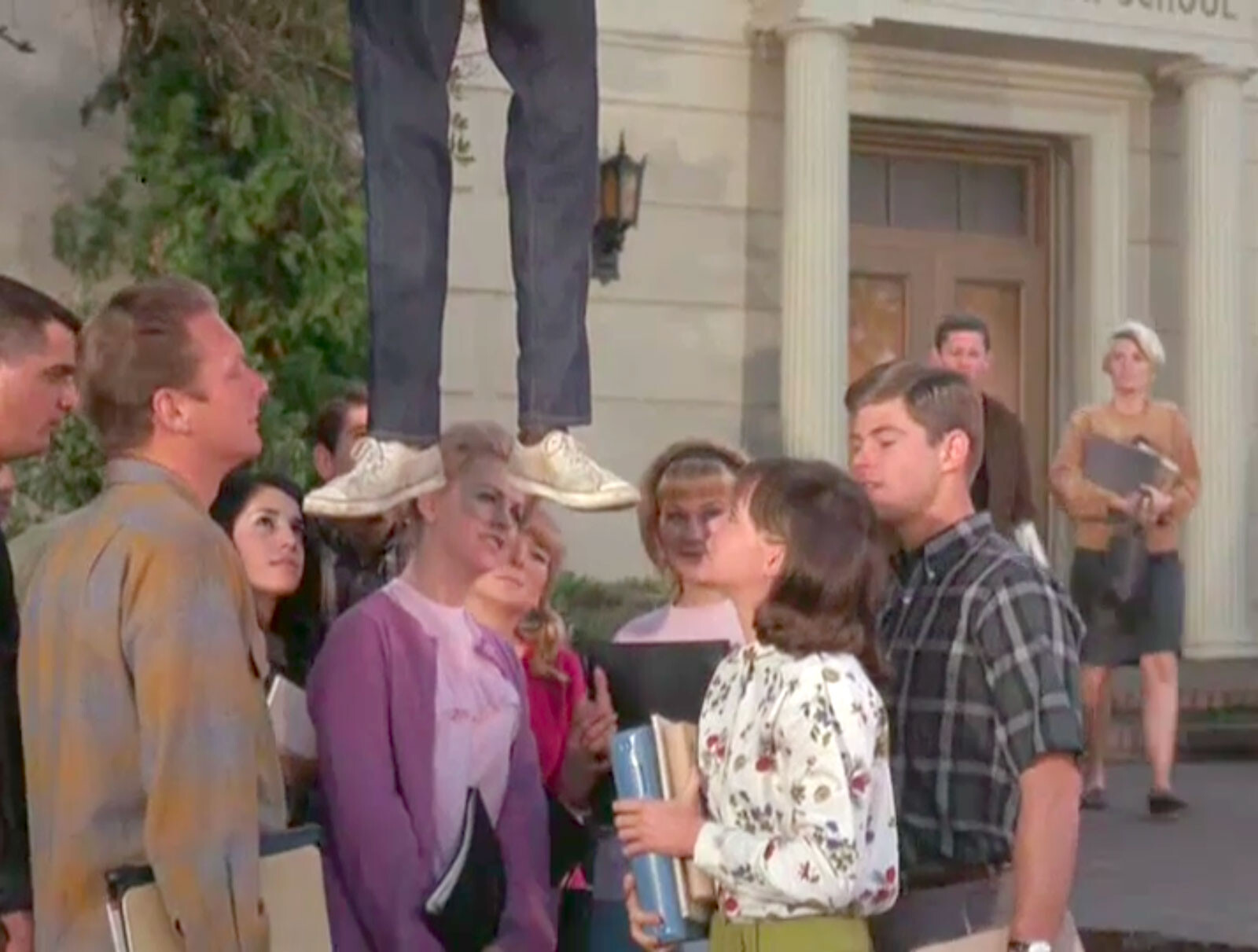 Gidget’s brother-in-law John (Pete Duel) is a psychology grad student given to lecture people about their true motivations like a know-it-all, but one of the most 1965 things about the show is how other characters are constantly quoting pop psychology concepts — even this dingbat who entered the Lawrences’ lives because she’s an English student with a crush on Russell.