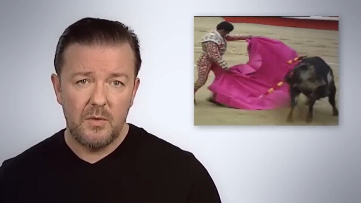 Anyways, here’s Gervais using his position as a celebrity to lecture the public about the serious real-world issue of Spanish bull-fighting: