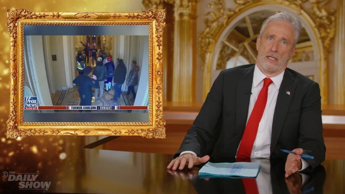 In Stewart’s sarcastically servile opening on The Daily Show tonight, he highlighted the blatant hypocrisy of the federal government and its subservient media machine when they claim that the FCC is within its rights to silence any uppity late-night host who tells an untruth on the air. Hell, it wasn’t that long ago that Fox News itself fired its biggest star Tucker Carlson in the fallout of a $787 million defamation case brought by Dominion Voting Systems over demonstrably incorrect claims made by Carlson that the 2020 general election results were fraudulent.