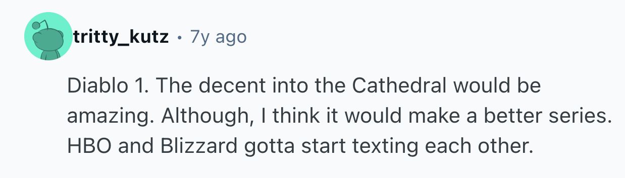 Come to think of it, many video games would make great movies. That's already been proven with Resident Evil, Silent Hill, Tomb Raider, the list goes on and on. Sure, the same attitude gave us Warcraft, but they can’t all be winners. That’s why user greateggspextations asked r/AskReddit, “What is a video game that would make an awesome, crazy movie if Hollywood was given the right budget and writing team?”