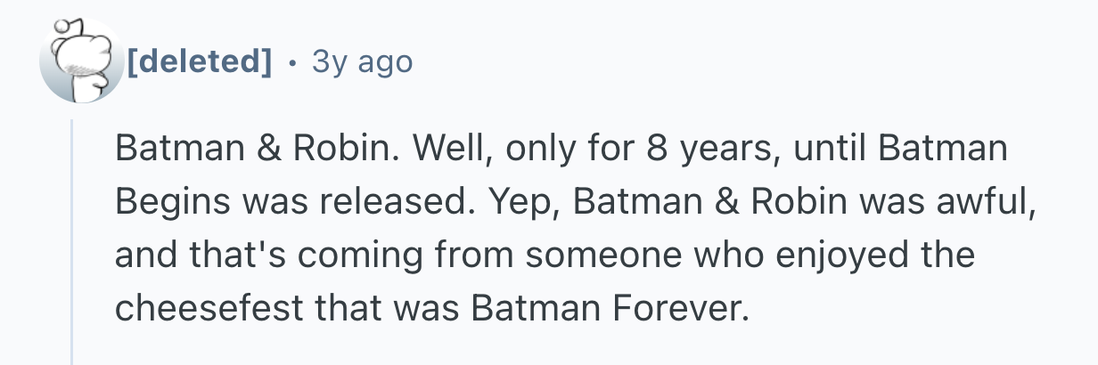 But “unlikely” isn’t “definitely.” Whether it’s a character’s death, the lack of a character’s death or just some seriously stupid shenanigans, one event occasionally really is enough to torpedo a series’ entire future. That’s why user mcflymartina asked r/AskReddit, “What movie killed a franchise? What episode killed a show? And most importantly, was it well-deserved?”
