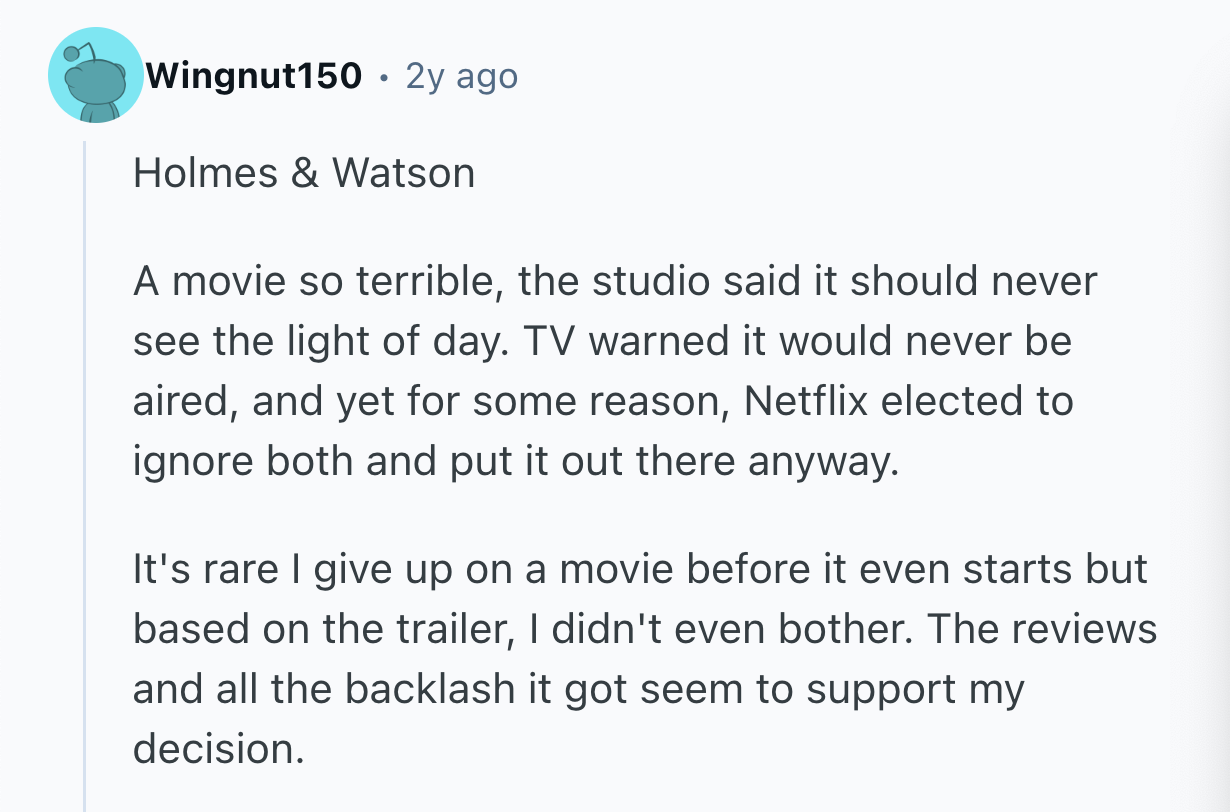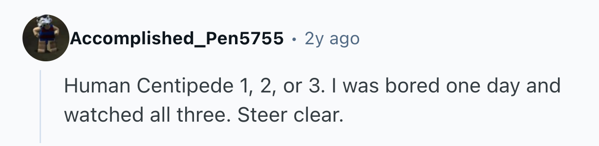 Some movies, however, are so bad that it defies reason that anyone could like them at all. These are the movies you put on when you want information out of someone and not just their opinion about the symbolism of the Everything Bagel. That’s why user TheRealOcsiban asked r/AskReddit, “What’s a movie that no human should ever suffer through?”