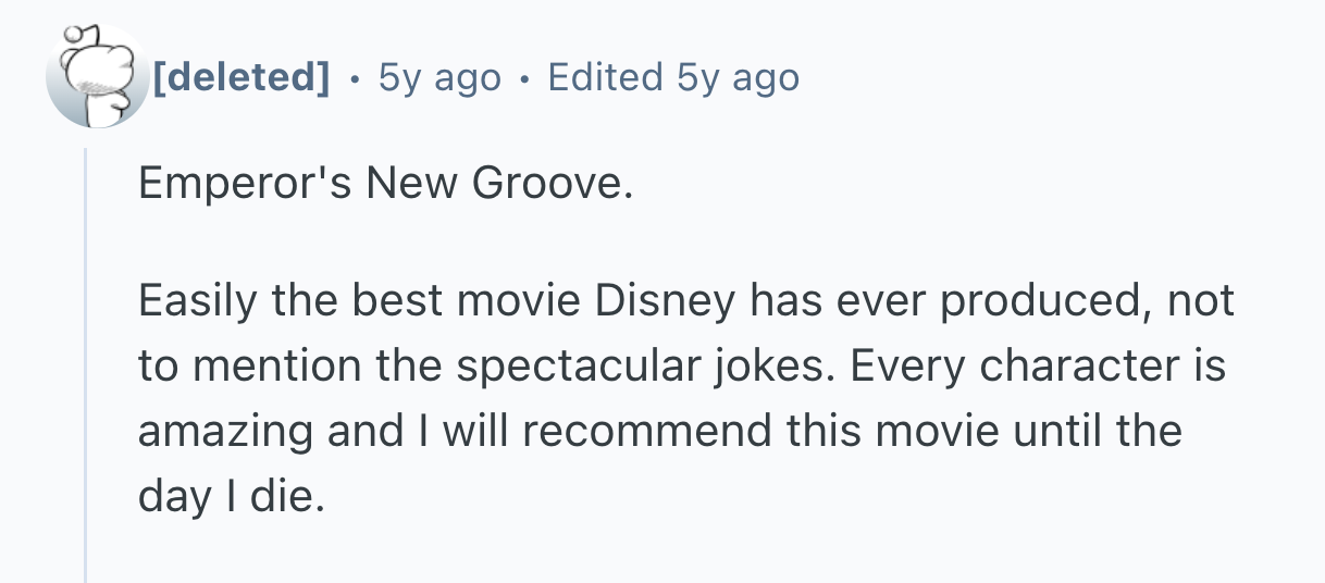 Except, you know, the movies that are for everyone. For Redditor HisBaeBee, that’s Mean Girls. “I do own that one already, though,” they told r/AskReddit. “I love it for all the memorable quotes.”