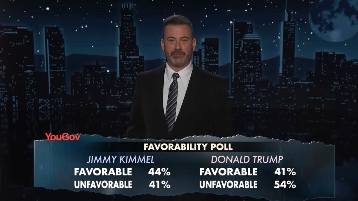 On last night’s episode of Jimmy Kimmel Live!, Kimmel proudly reported the results of a recent YouGov favorability poll that shows the late-night host leading the President by 16 points. However, as Kimmel admitted, that seemingly sizable lead is still slightly embarrassing for him, considering how Kimmel has broken up zero families and was never so much as an acquaintance to Jeffrey Epstein.