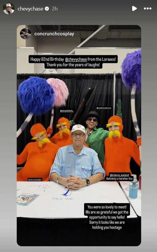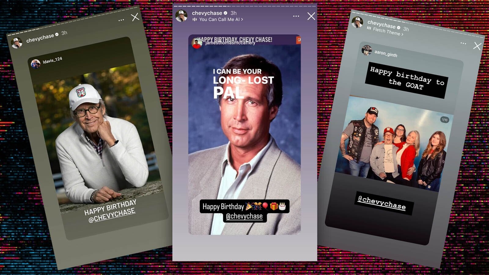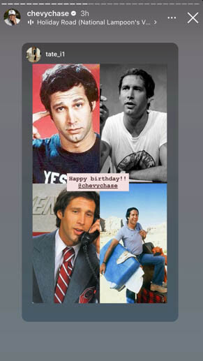 Don’t worry, Chevy Chase has you covered. He’s using his Instagram Story as a personal tribute page, reposting seemingly every single shoutout that the site’s inhabitants have to offer. As I write this story, Chase has shared 32 birthday greetings so far, but hey, it’s only lunchtime.
