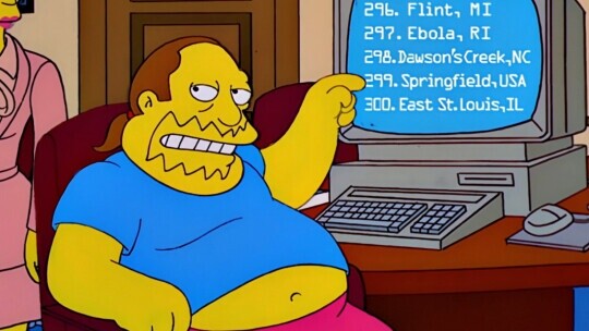 At one point in the season ten episode “They Saved Lisa’s Brain,” Comic Book Guy brags that the town of Springfield had recently moved up to “number 299 on the list of America’s 300 most livable cities,” before adding, “take that East St. Louis!”