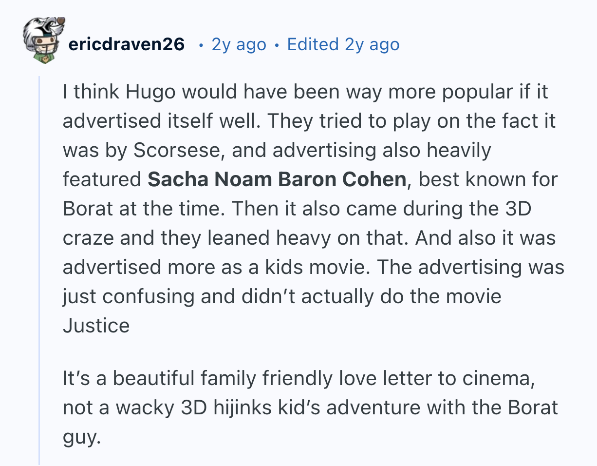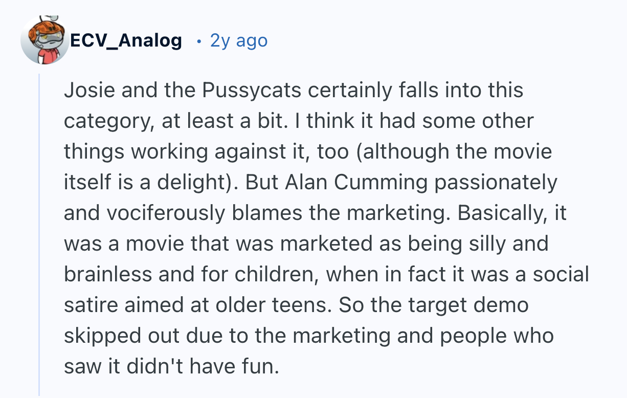 They asked, “What are some movies that didn’t become popular due to marketing failures?”