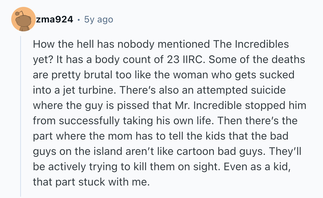 In fact, just about every Disney movie is just as horrifying. That's why u/xx_Chl_Chl_xx asked r/AskReddit, “What is, in your opinion, the most f---ed-up movie that Disney has ever made?”