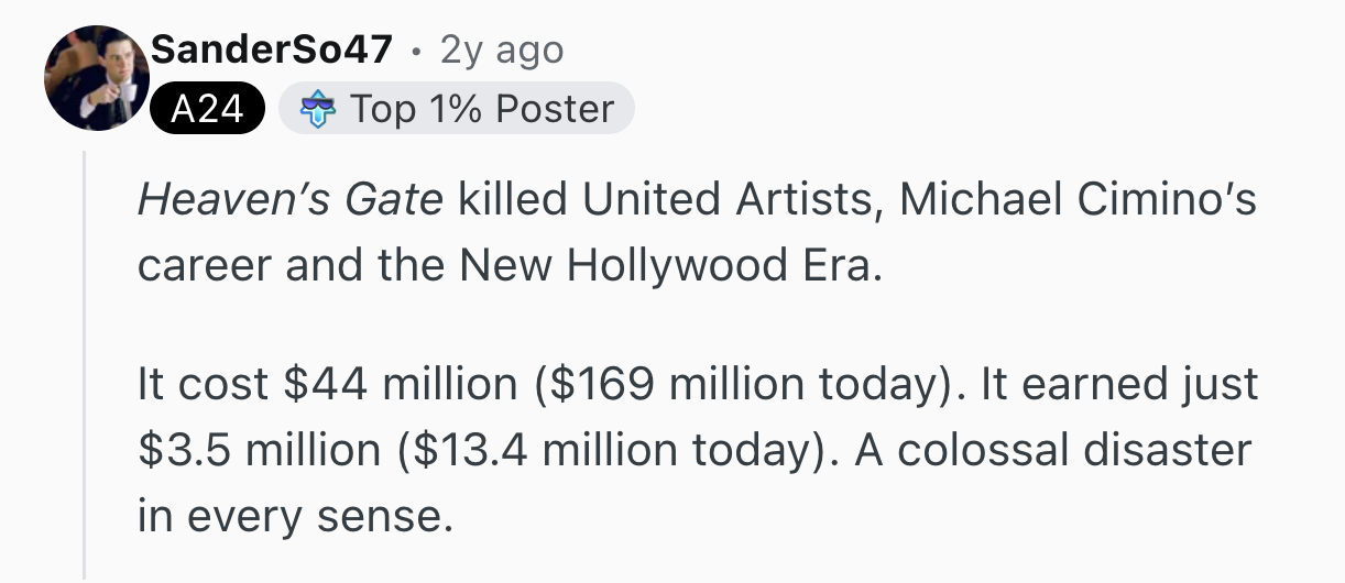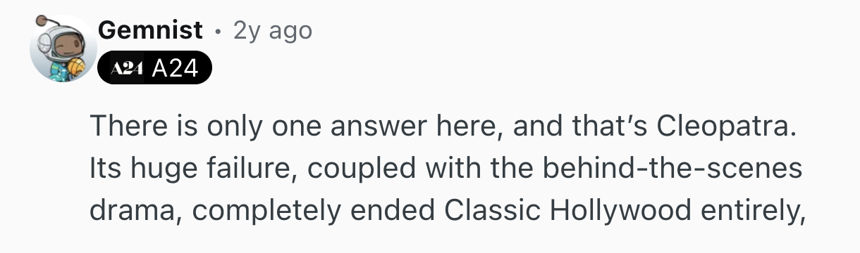 They asked, “Which movie's box office failure had the largest impact on the industry as a whole?”