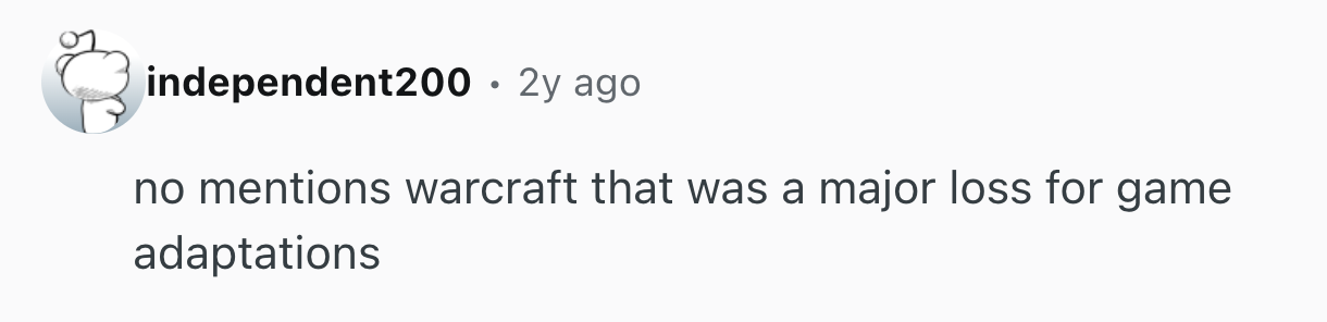 However, “ still managed to drop the ball,” they continued. “Had it been a huge success like it should have been, I think studios would have been a lot more open to dumping a lot of money into video game movies not aimed at children. We could have gotten cool, weird shit like Wolfenstein or Dishonored. It could have been the next big genre.”